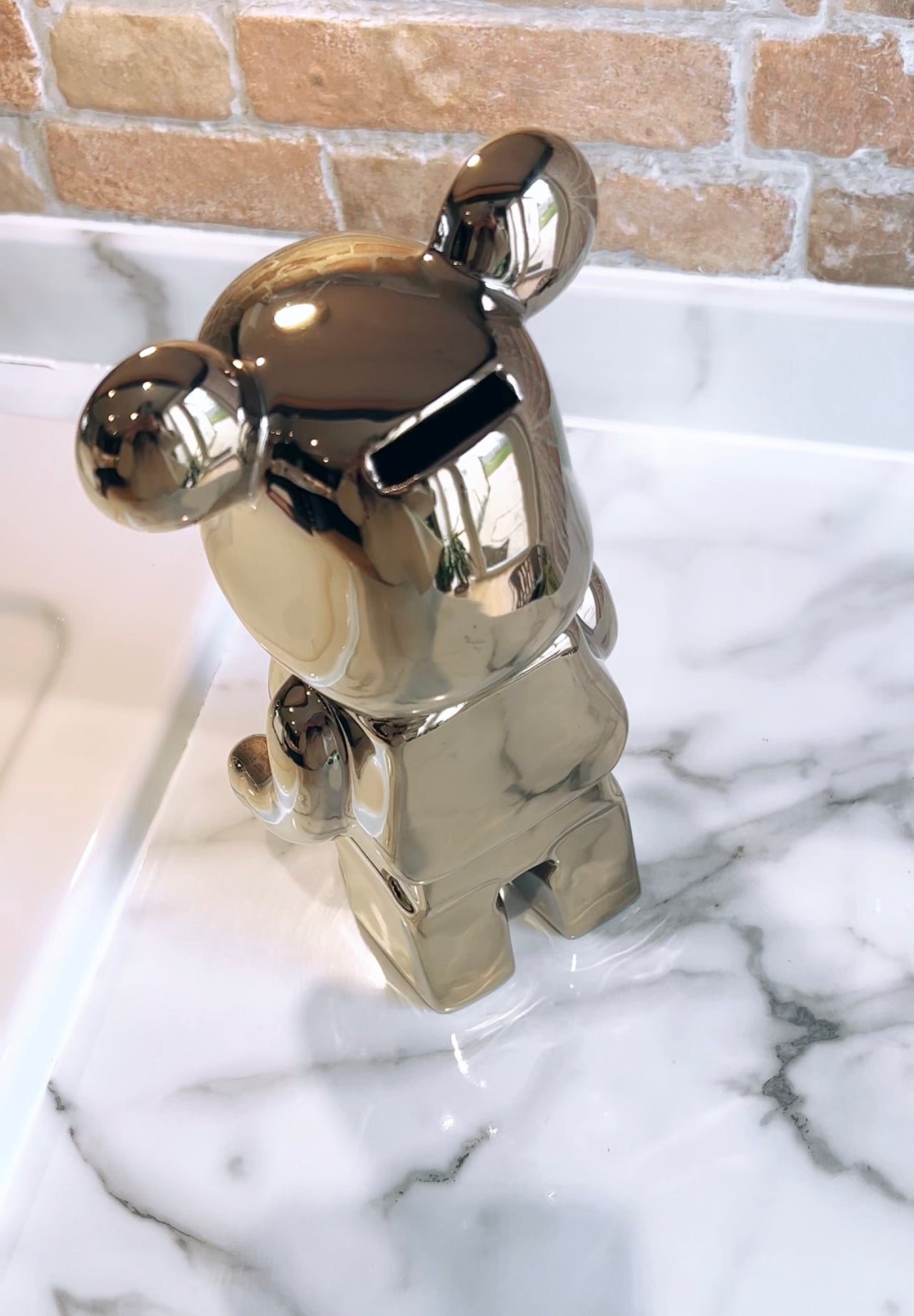 Rose Gold Bear brick piggy bank ceramic sculpture