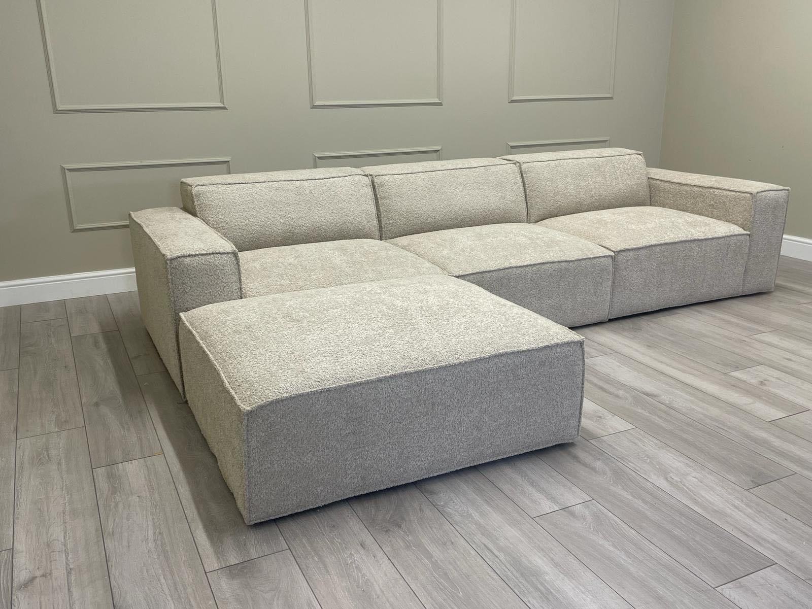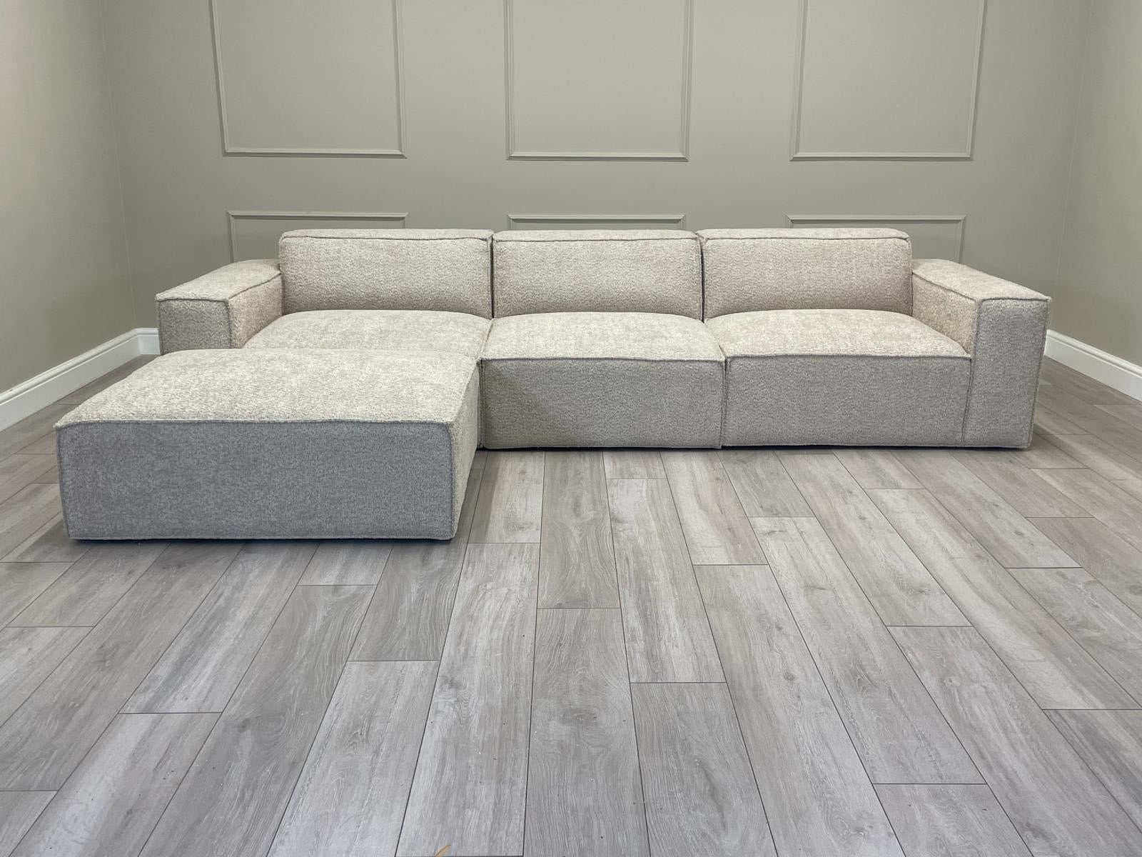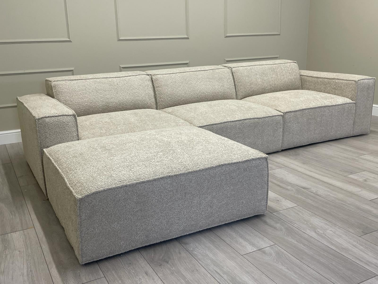 Three Seater Modular Sectional Sofa + footstool - Ivory Boucle Fabric via Luxe Furniture partner