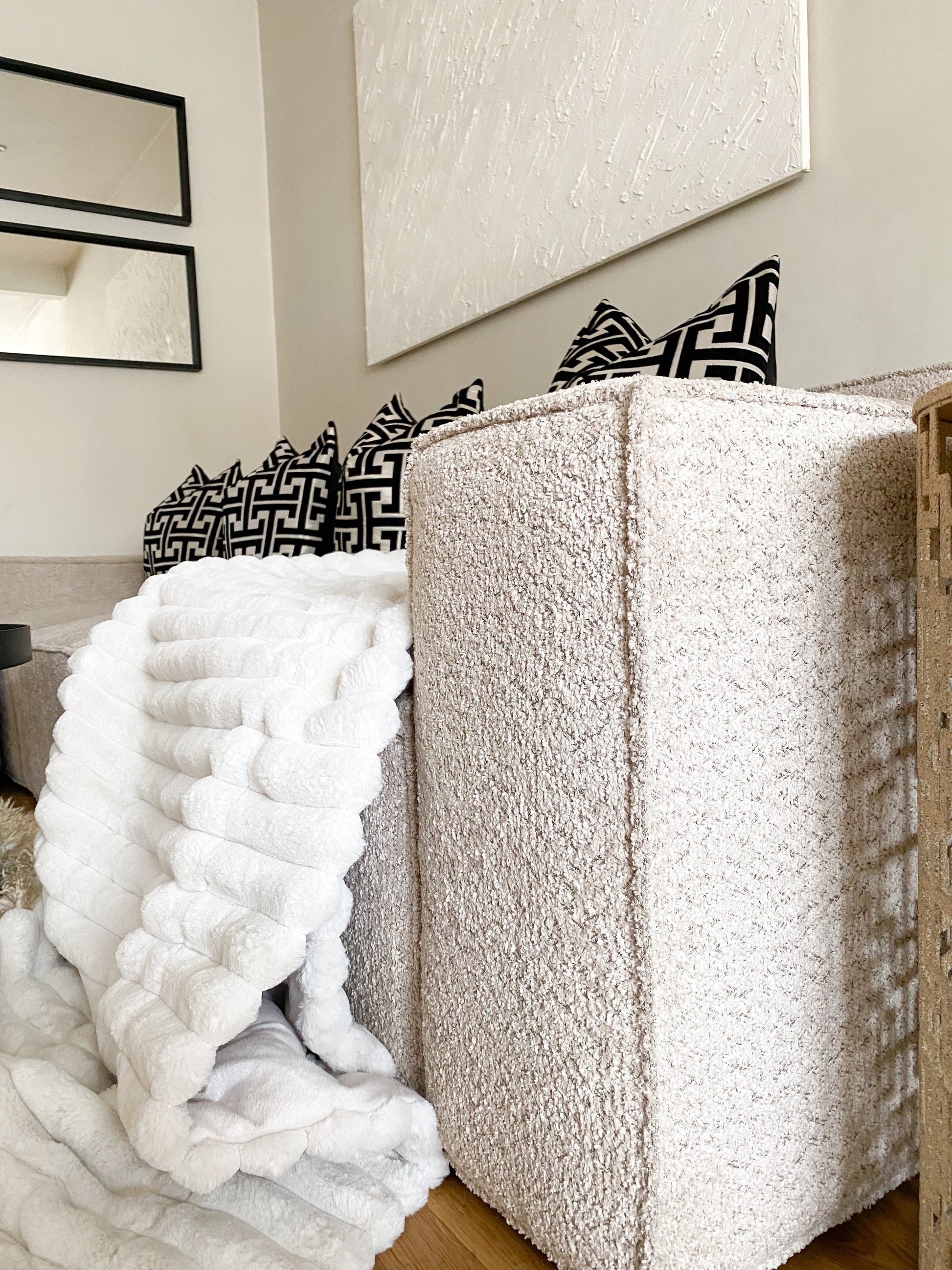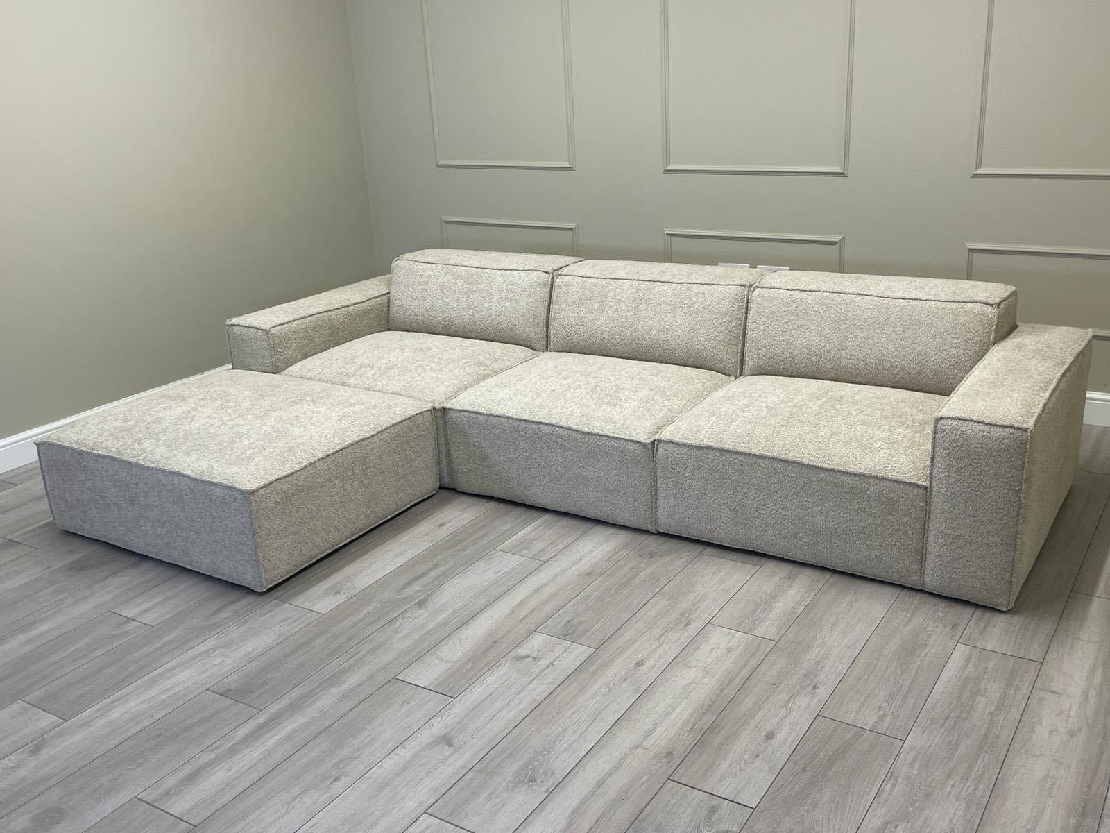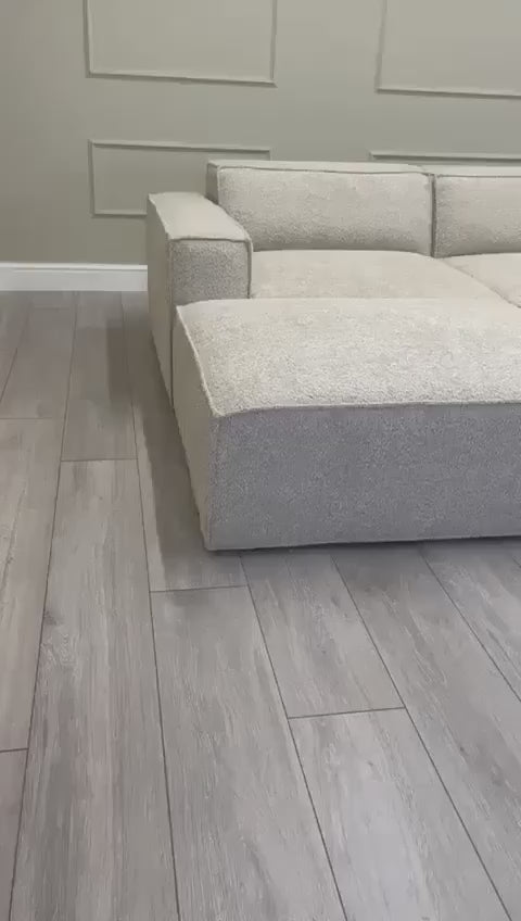 Three Seater Modular Sectional Sofa + footstool - Ivory Boucle Fabric via Luxe Furniture partner