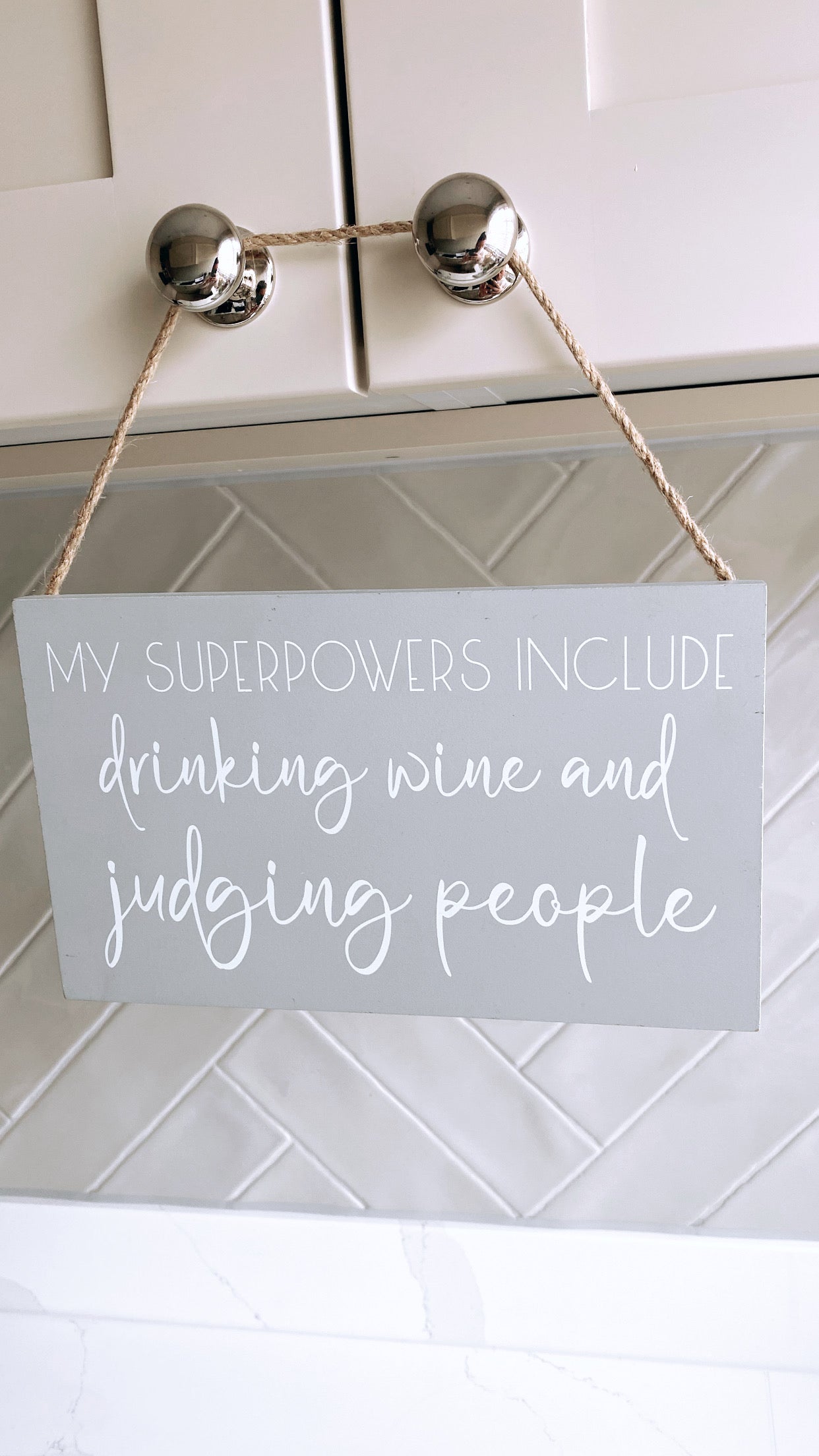 Elevate your home decor with our Drinking Wine & Judging People Hanging Plaque. Crafted with high quality materials, this plaque features a witty phrase that adds a touch of humor to any space. Perfect for wine lovers and those with a discerning eye, this plaque serves as a stylish and amusing accent piece.