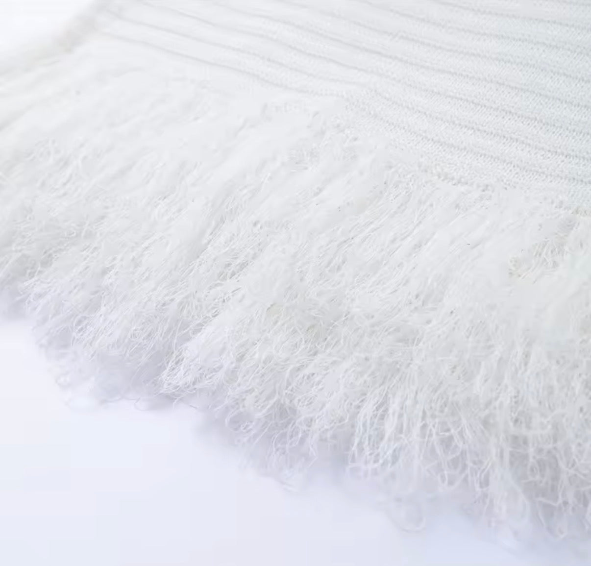 "Upgrade your wardrobe with our elegant Knit Tassell Co-Ord Set. This cream off white set includes a knit skirt and cardigan top with tassel detailing, perfect for any occasion. Made with high-quality materials, this fashion set offers a polished and sophisticated look."