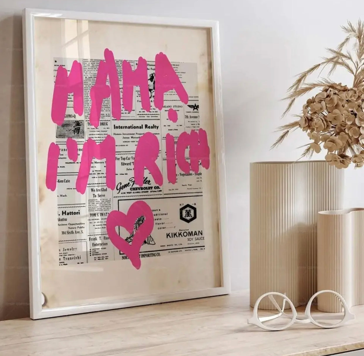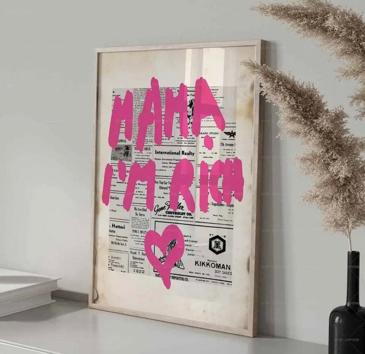 The MAMA I'M RICH Cotton Canvas Print is a stylish addition to any wall. Made with high-quality cotton canvas, this print boasts vibrant colors that will elevate any room. Its durable material ensures long-lasting beauty and its design is sure to make a statement.