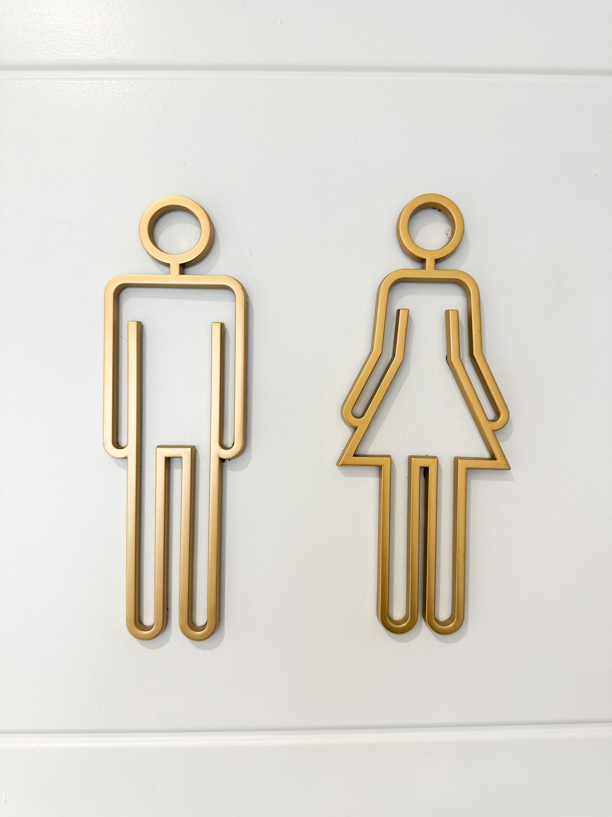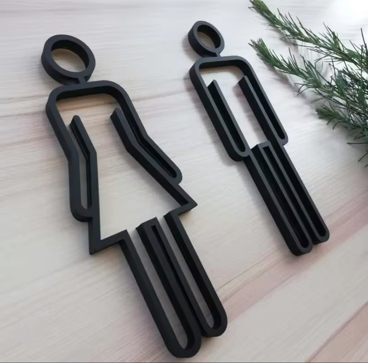 This self-adhesive Man & Woman Toilet Door Sign is a convenient and essential bathroom accessory. Clearly label your restroom for both genders with this durable and easy-to-install sign. Perfect for any public or private bathroom settings. Strong adhesive.