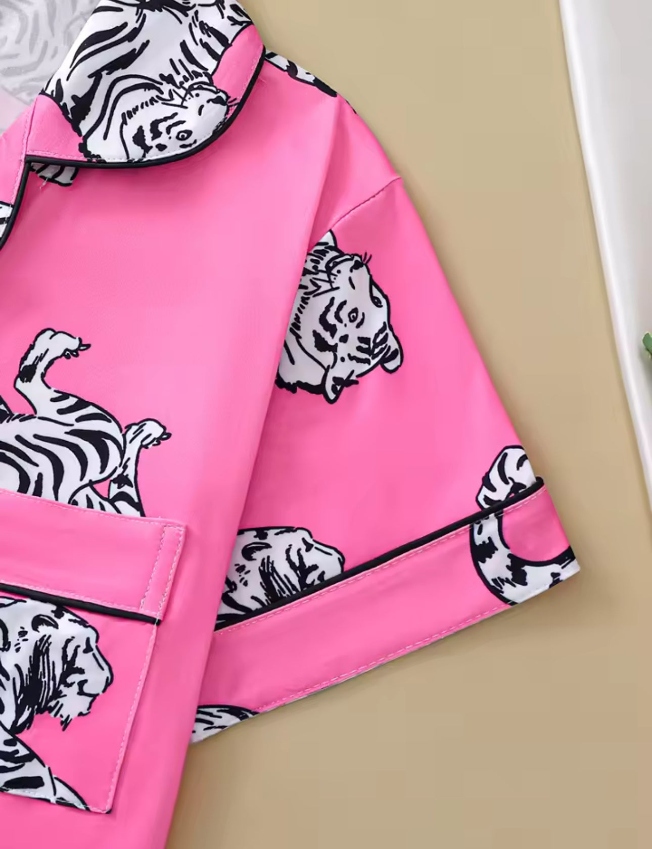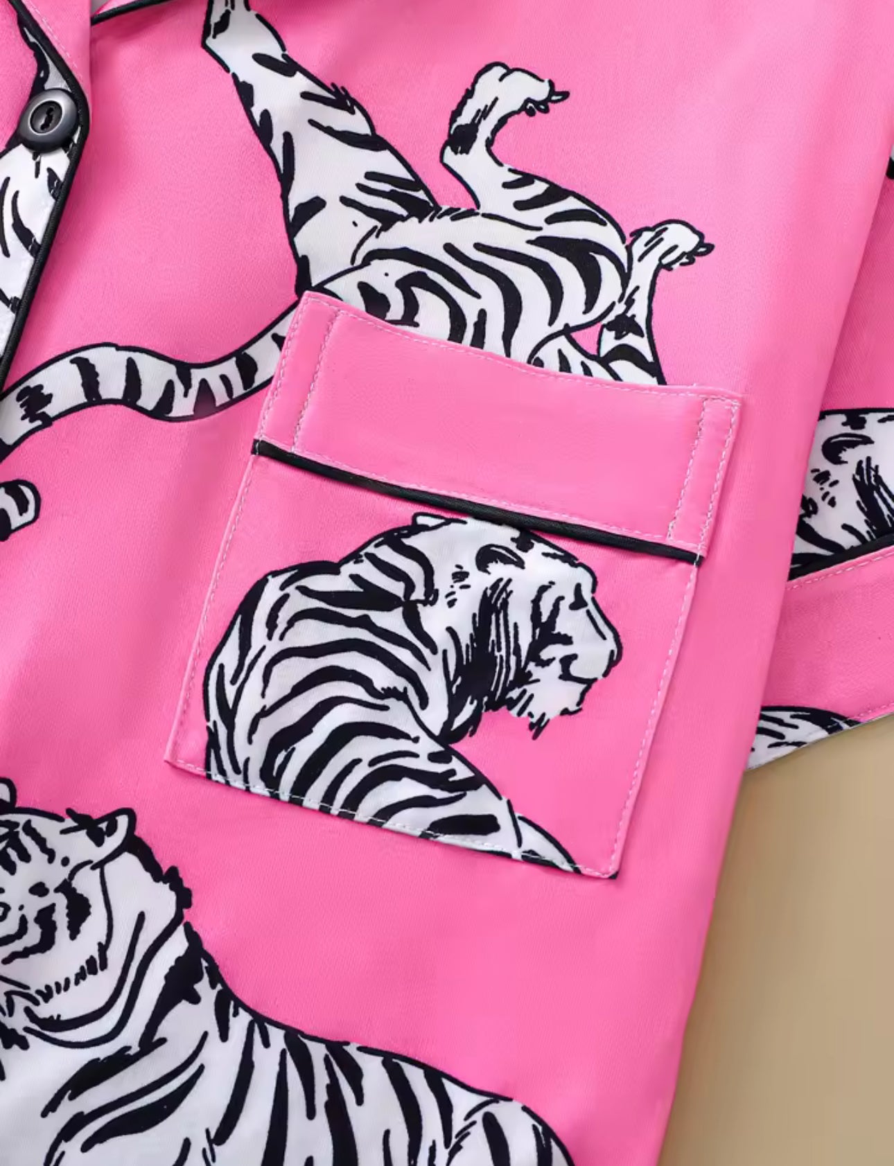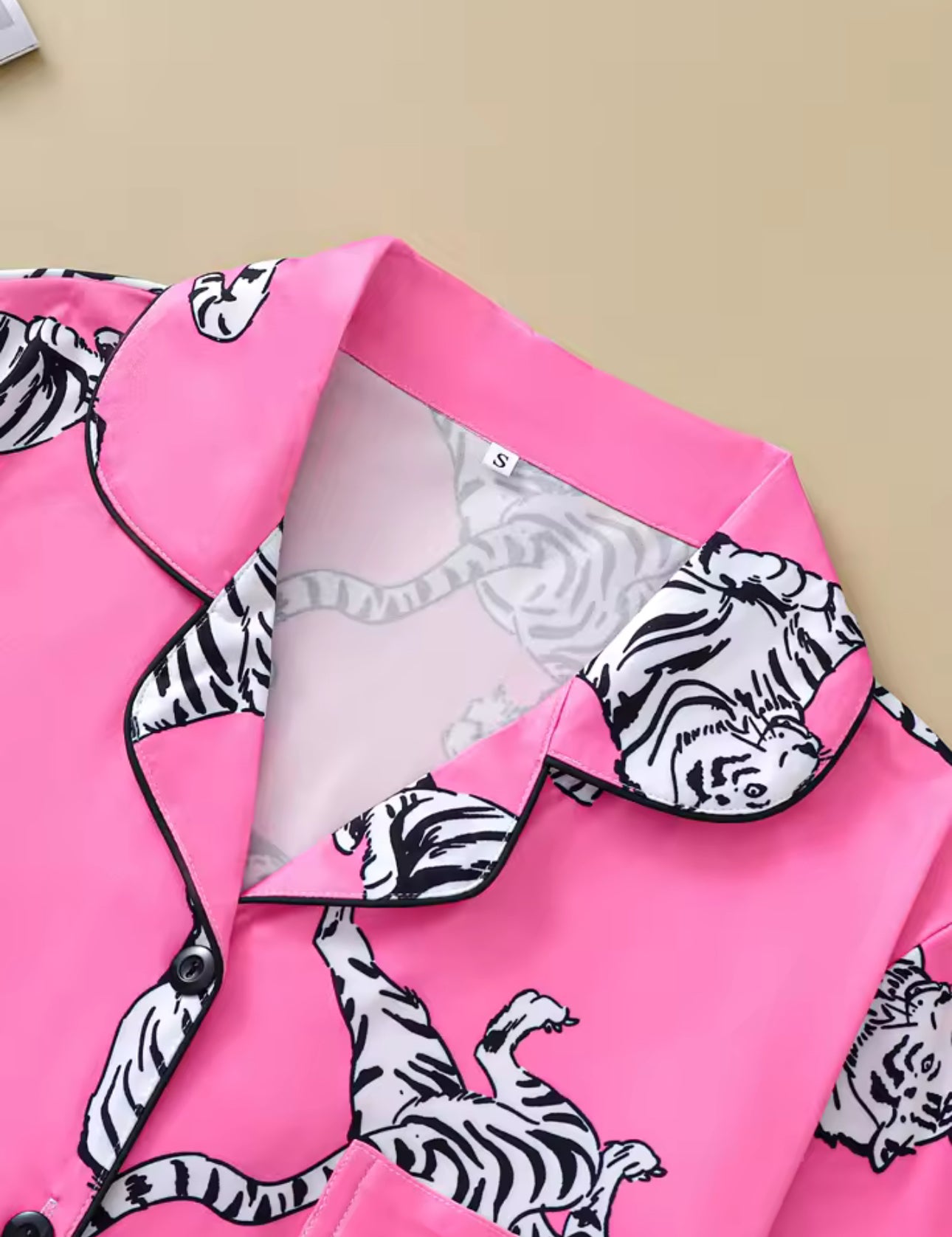 These Pink Tiger Pyjamas are made of soft and comfortable material, perfect for a peaceful night's sleep. The playful pink tiger design adds a touch of fun to your loungewear. Made from high-quality fabric, these pyjamas are durable and long-lasting. Sleep in style and comfort with Pink Tiger Pyjamas.