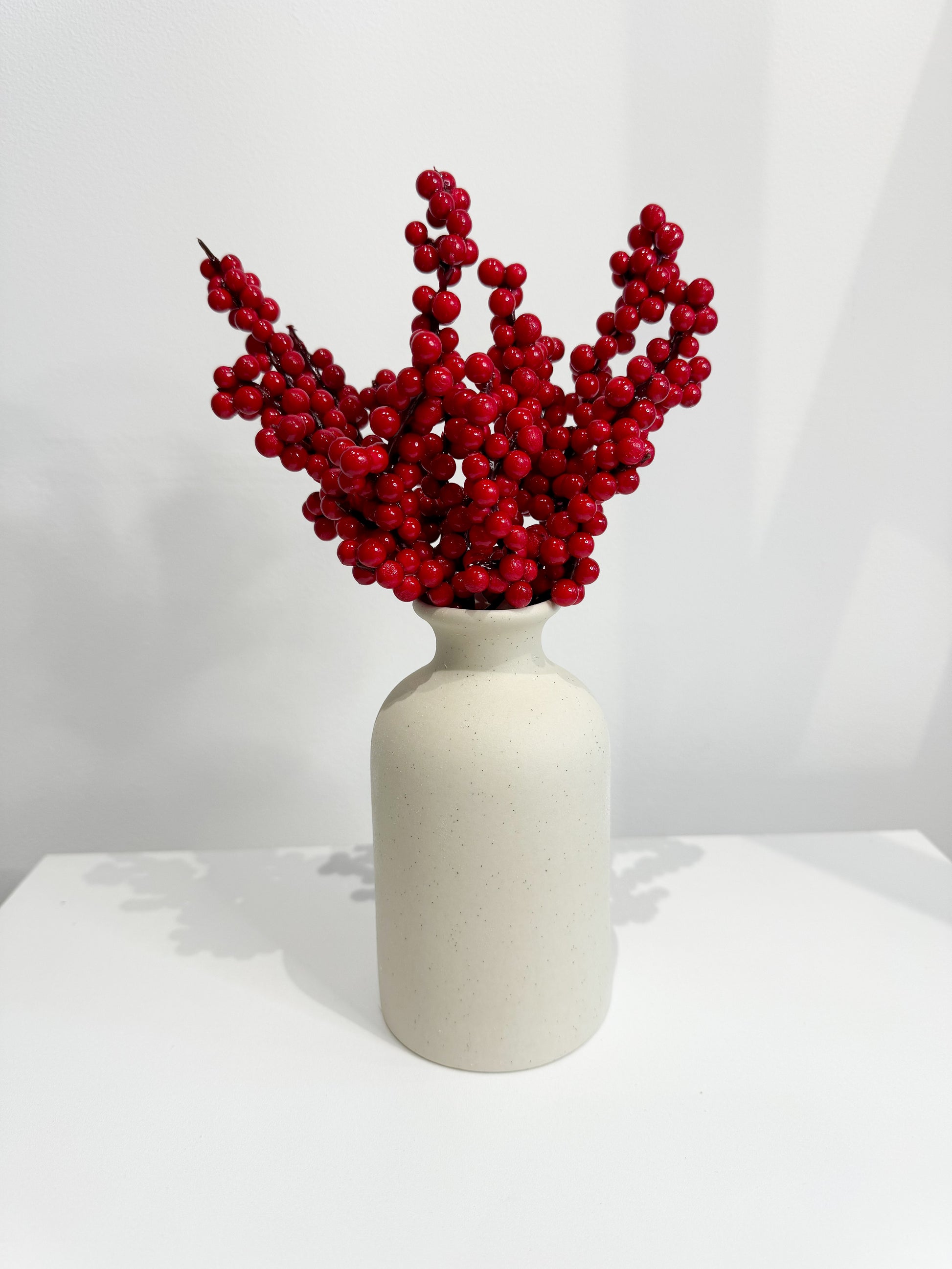 This Red Berries and Vase set brings a touch of nature into your home with its highly realistic artificial berries and elegant vase. Achieve a timeless and effortless look, without the maintenance of real plants. Made with high-quality materials, this set is perfect for adding a pop of color to any room.