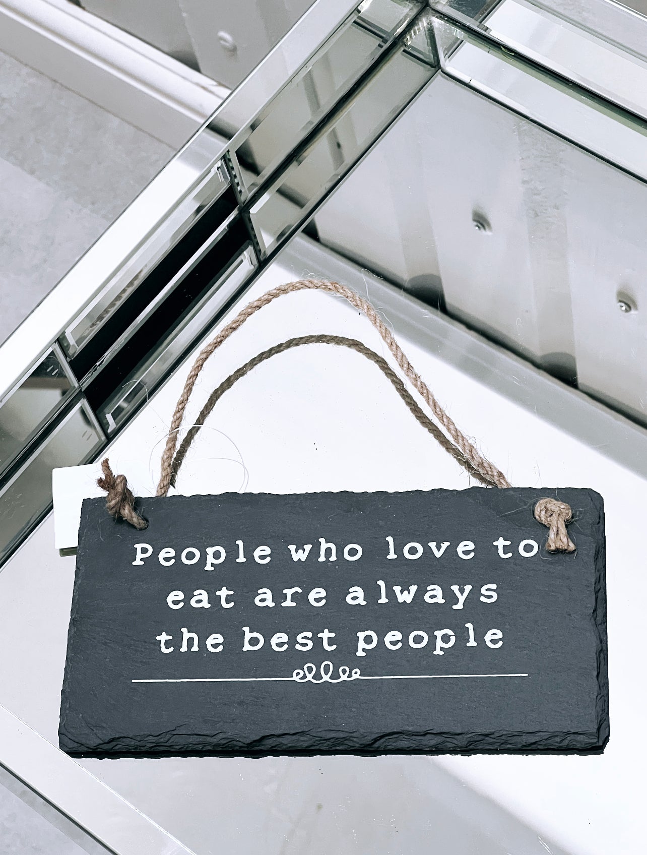 Slogan slate plaque, ideal for anywhere in the home. Rope attached to hang from door handles or a wall hook.