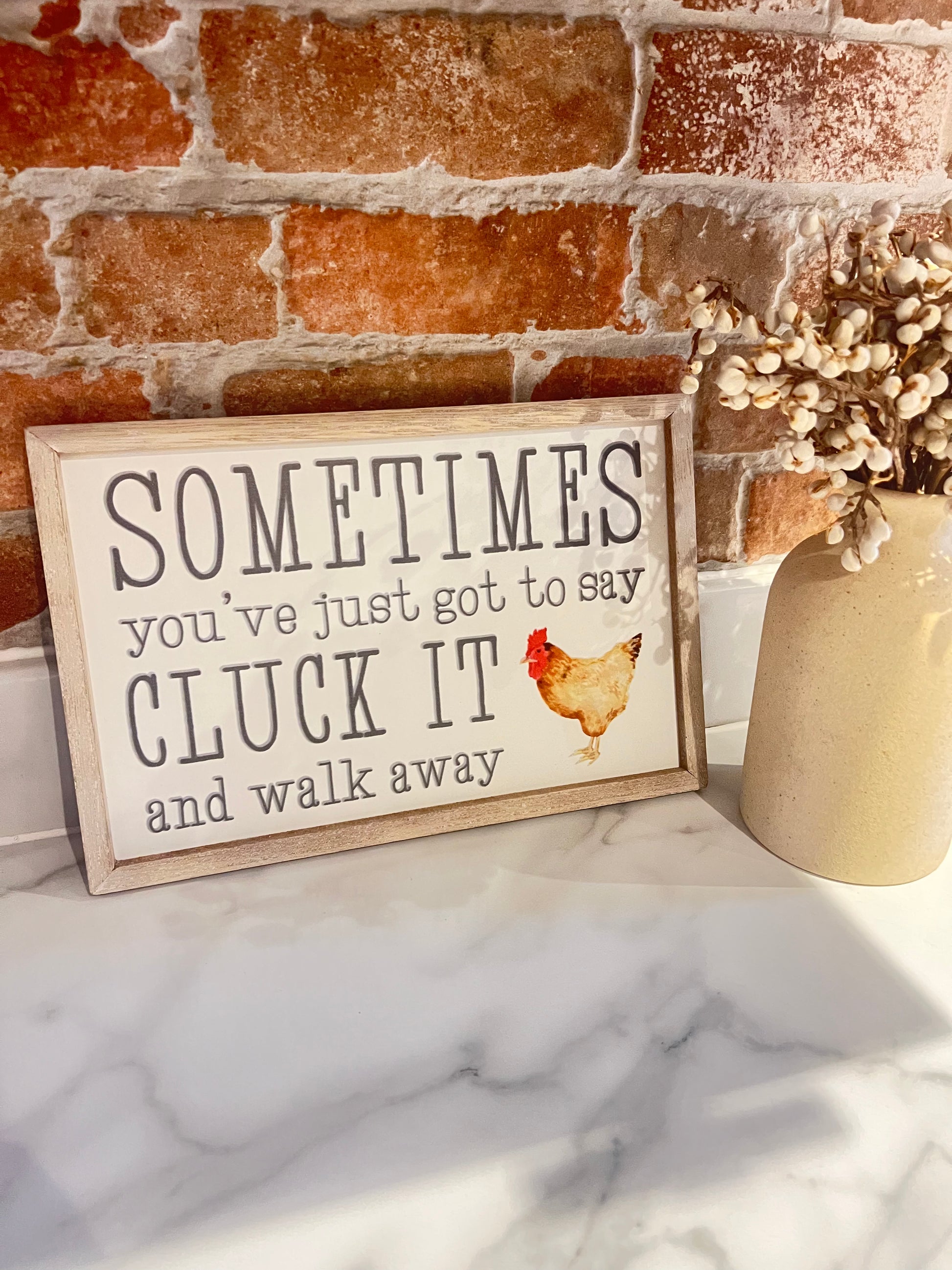 This wooden wall sign plaque, featuring the phrase "Cluck it," adds a touch of humor to any room. Made from high-quality materials, it is durable and sure to last. Express your playful side with this unique and charming decor piece.