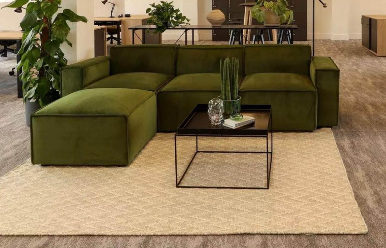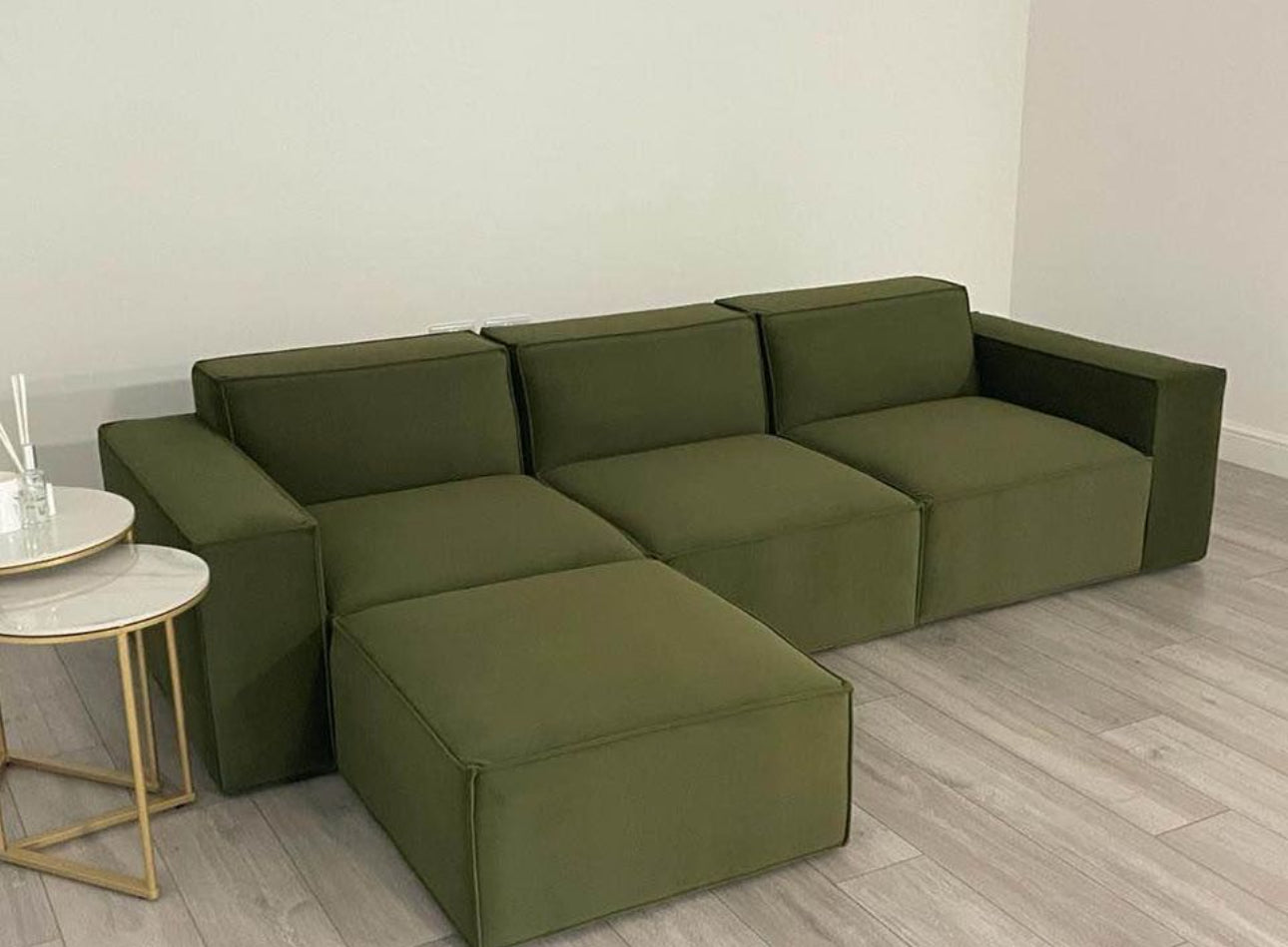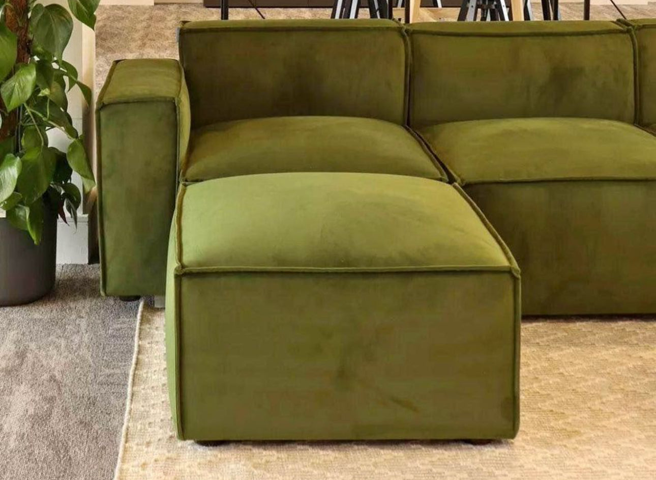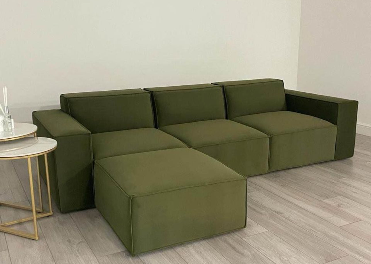 Vine Green Sectional 3 Seater Sofa + Footstool