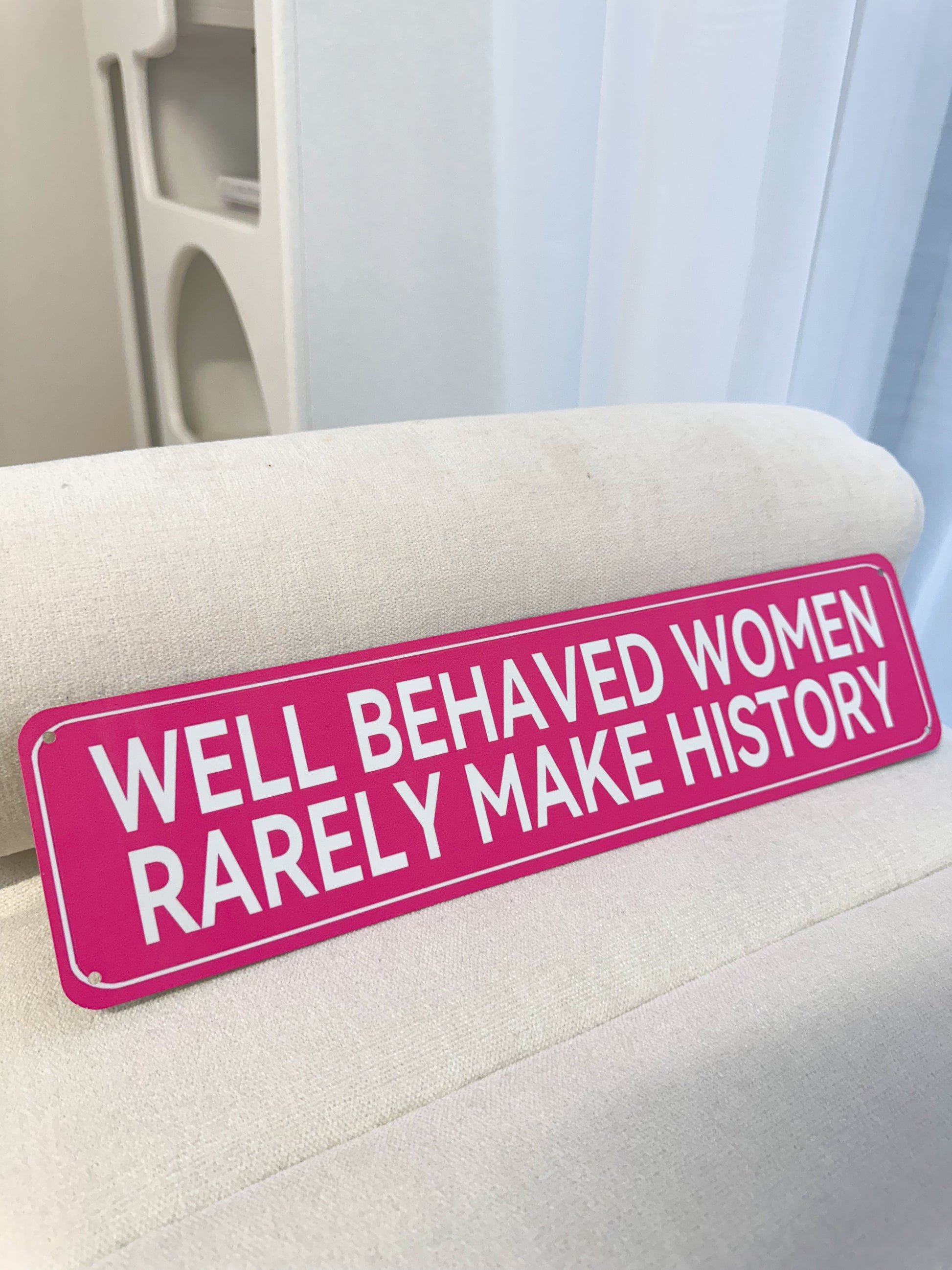 Well Behaved Woman Rarely Make History Pink Plaque / Sign